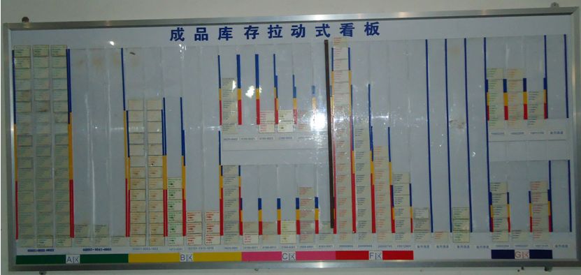 成品超級市場,包裝完成後成品入成品倉,上超級市場看板,客戶拉動資訊直接回饋到看板上,與毛胚超級市場對接,建立JIT生產(chǎn)模式,實(shí)現(xiàn)準(zhǔn)時化生產(chǎn)作業(yè)。 |